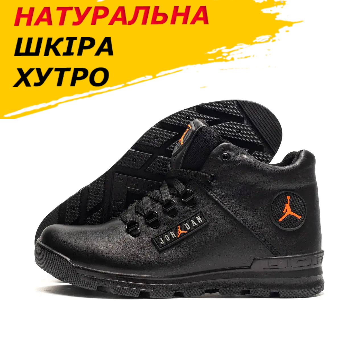 Зимові чорні шкіряні високі черевики чоловічі спортивні на хутрі для чоловіків *J-23 бот* real